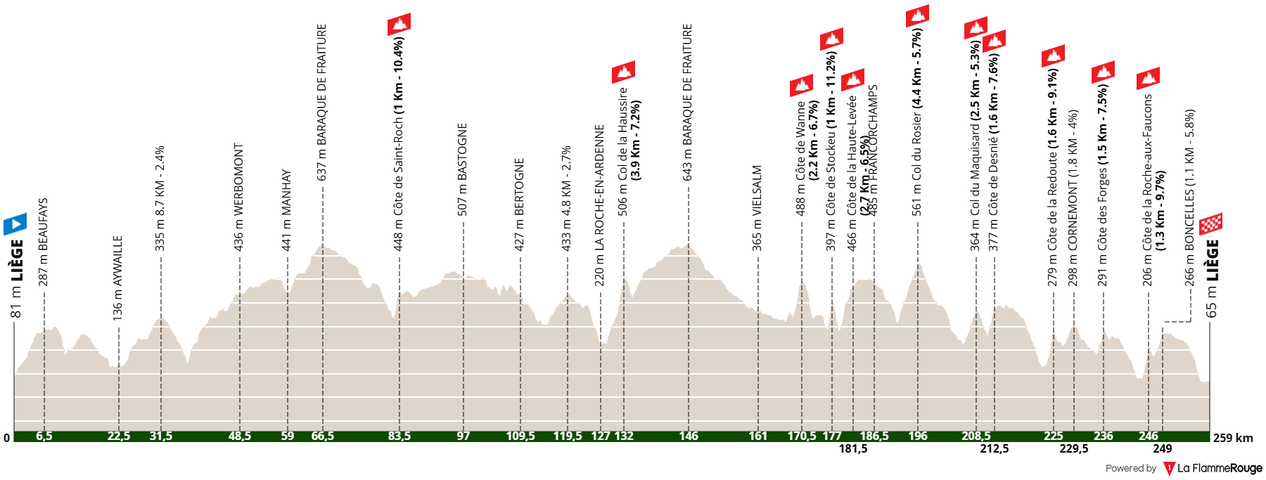 13 km: Côte de La Roche-Aux-Facons: dĺžka 1,3 km; sklon 11 %