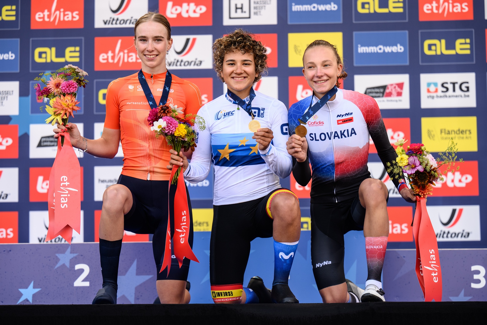 Medzi elitnými ženami sme svoju zástupkyňu nemali. Najlepší dosiahla a titul majsterky Európy získala domáca Lotte Kopecky. Na striebornej priečke stratila 43 sekúnd Ellen van Dijk z Holandska. Bronzovú medailu si vybojovala Rakúšanka Christina Schweinberger.