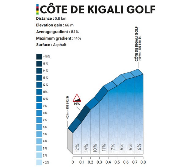 V predchádzajúcich kategóriách sme videli, že organizátori vypísali preteky o jedno až dve kolá kratšie než to býva na MS zvykom. Dôvod bol jednoduchý - ťažká trať. Aj to už znamenalo dokončenie pretekov menšej polovice štartovej listiny, v niektorých kategóriách dokonca iba jednej tretiny. Muži však dostali za úlohu v Kigali absolvovať 267,5 km, teda prakticky identickú vzdialenosť ako napríklad na MS v Leuvene 2021 či Wollongongu 2022, ktoré boli profilovo jednoduchšie. Ak by sme to porovnali s poslednými tak ťažkými MS, tak v Innsbrucku 2018 jazdili o desať kilometrov menej. Očakávali sa preto veľmi tvrdé selekcie a dokončenie maximálne tretiny štartujúcich.
