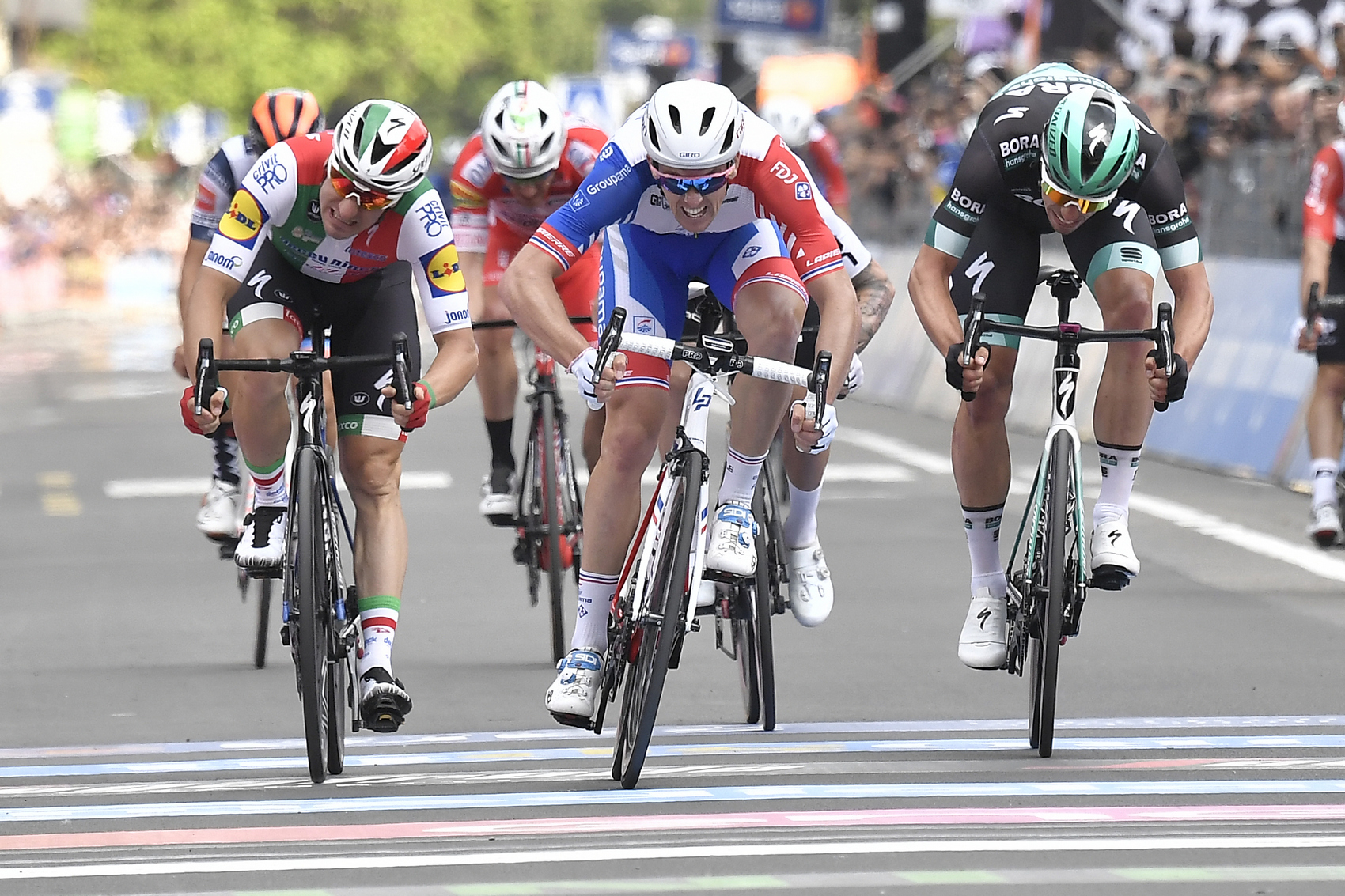 Etapa ponúkla najzaujímavejšie momenty len tesne pred cieľom, keď očakávaný šprintérsky dojazd poznačil hromadný pád. Po tomto incidente zostalo vpredu len pár jazdcov a najlepšiu koncovku vytiahol Arnaud Démare. Jazdec tímu FDJ využil podporu svojho kolegu, ale musel začať šprintovať pomerne ďaleko pred cieľom. To mu však nezabránilo v tom, aby získal svoju prvú výhru na podujatí, keďže vo finále mal najsilnejšie nohy. Po dlhom čakaní sa mu podarilo presadiť v hromadnom špurte na talianskych cestách a skutočne to bolo po výbornej koncovke.