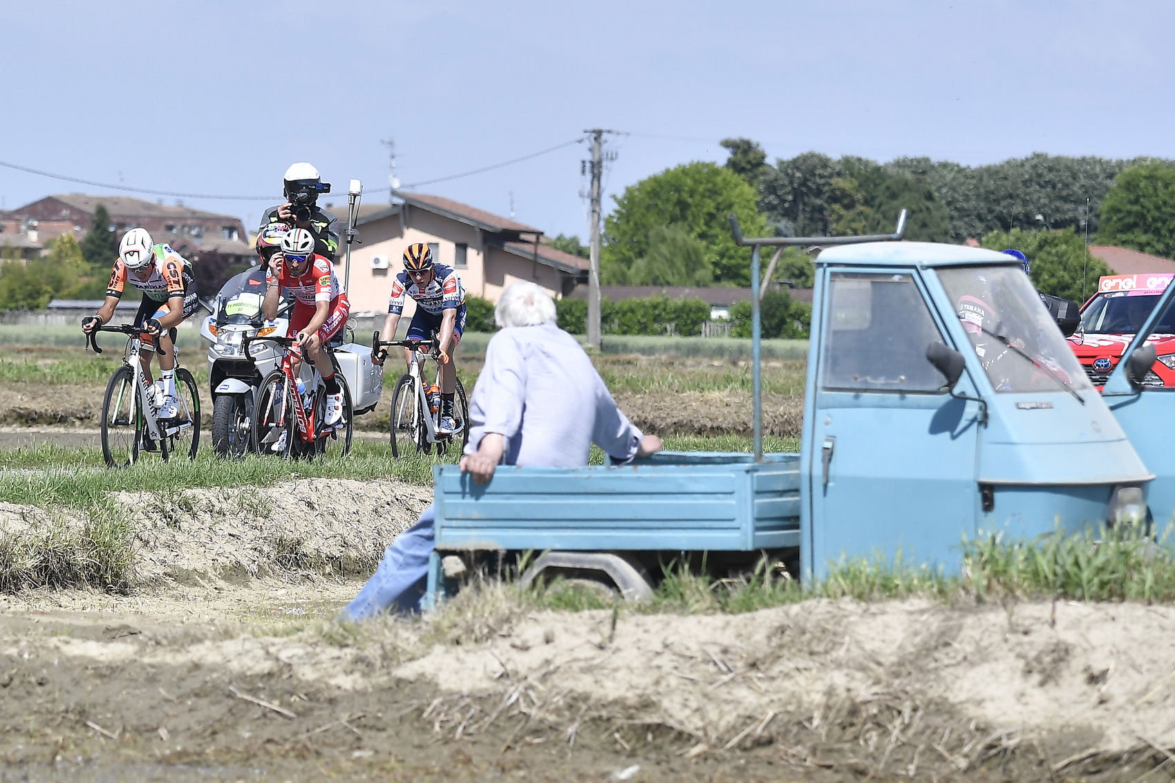 Trojica talianskych utečencov sa už predstavila v niekoľkých únikoch a na čele pretekov odjazdili najviac kilometrov spomedzi všetkých jazdcov. Dnes chceli svoju štatistiku rozšíriť a organizátori im na to vyčlenili skutočne štedrý priestor. V slnečných podmienkach a na rovinatom profile neboli veľkým protivníkom pre hlavnú skupinu, ale ani tak si nevybudovali vyšší náskok ako štyri minúty. Šprintérske celky jednoducho nechceli hazardovať s takouto príležitosťou, ktorá sa už nebude opakovať v tohtoročnej edícii. Nešlo sa úplne pomaly, po dvoch hodinách vyskočil priemer na 42 km/h.