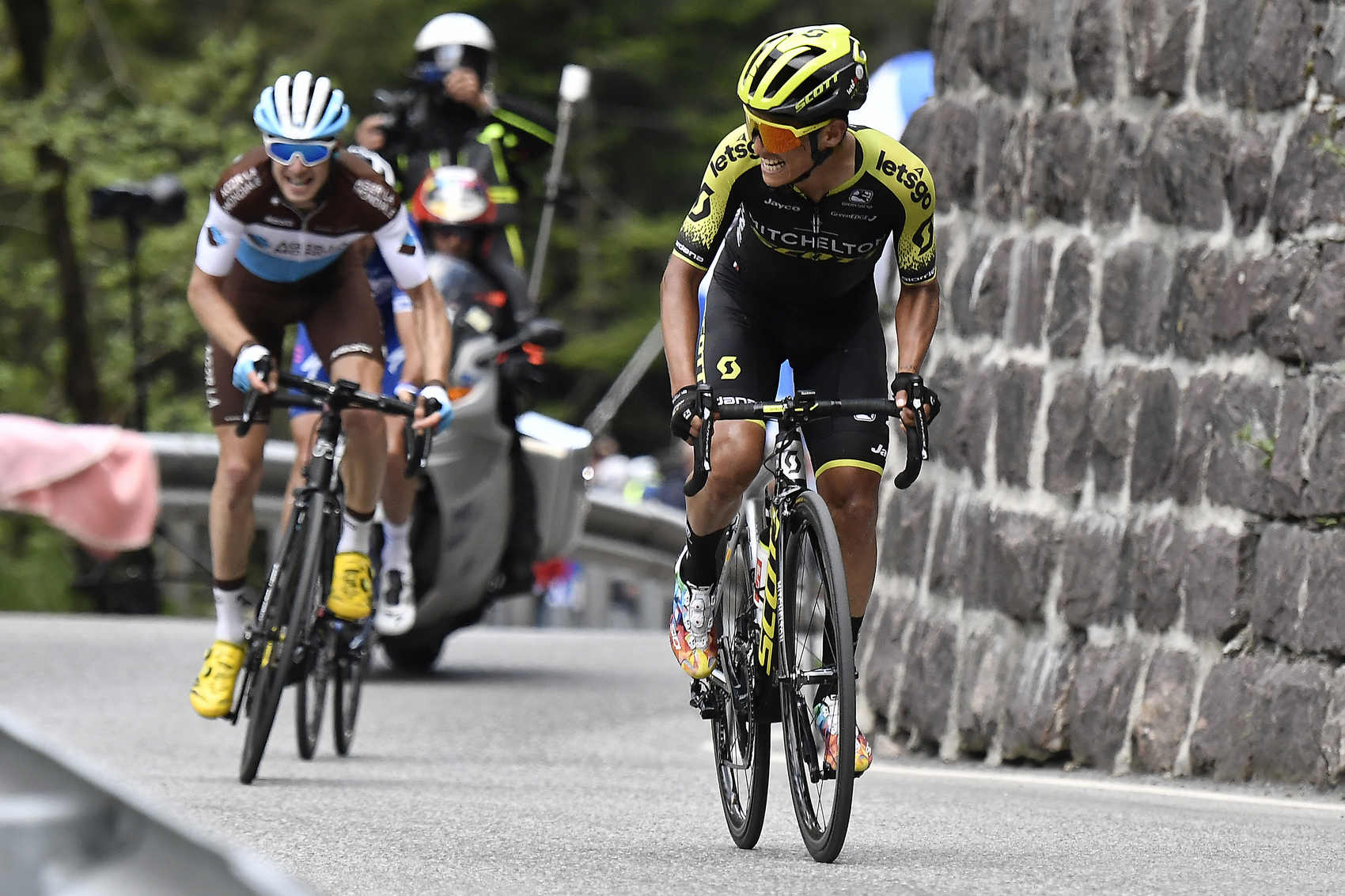 Vo vedúcej skupine prebiehala pekná taktická bitka na tempárskych sklonoch a najskôr z toho vyťažil Marco Canola. Veľmi sa snažil Cháves a chvíľu mu trvalo, kým dokázal rozdeliť skupinu. Podarilo sa mu chytiť Canolu a spolu s ním išli dopredu aj Bidard, Serry, Vendrame. Kolumbijský cyklista potreboval tvrdšie sklony, aby odišiel svojim konkurentom, a všetky jeho pokusy boli eliminované. Štyri kilometre pred vrcholom doplnili vedúcu skupinu aj Antunes a Carboni. V balíku sa začala ukazovať Astana.