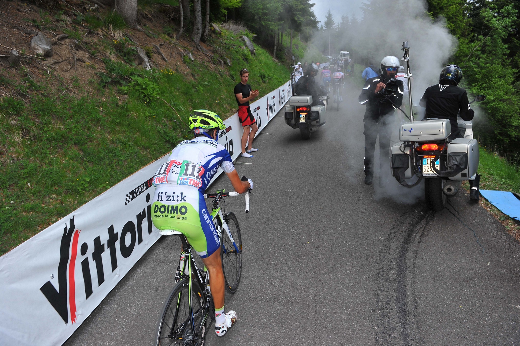 | Na Zoncolane majú problém aj motorky, na snímke Nibali (© LaPresse/Franck Faugere) |