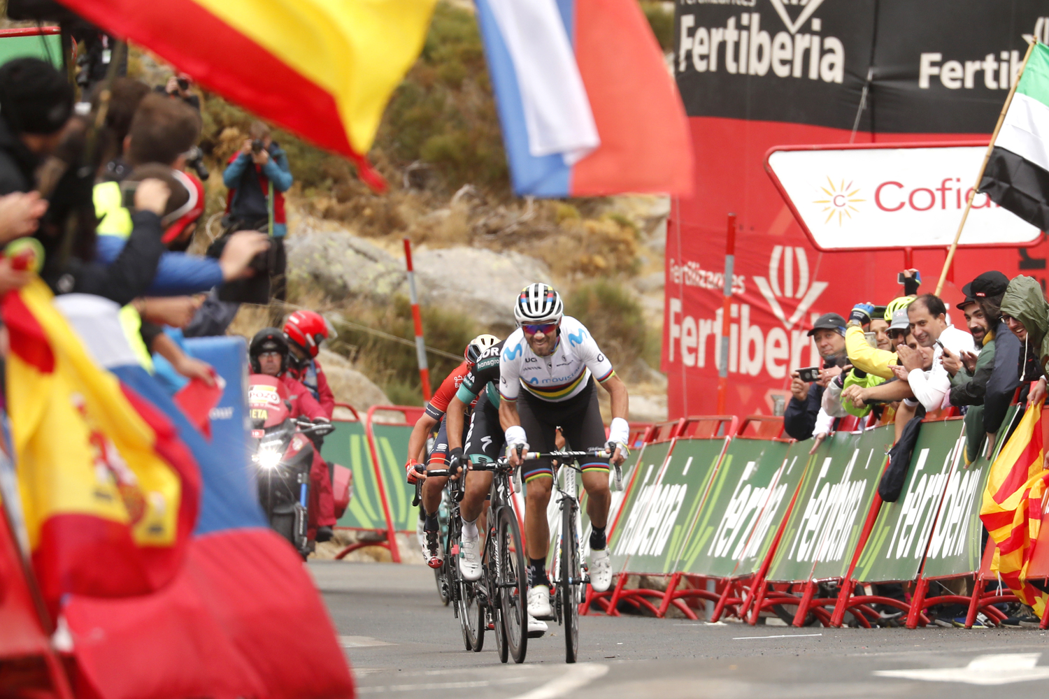 Svoje si pre tímový web povedal aj Alejandro Valverde, ktorý vraj pred začiatkom pretekov vôbec ani neuvažoval o celkovej klasifikácii. „Som neskutočne spokojný. Pred začiatkom podujatia som sa ani neodvážil snívať o druhom mieste, myslel som len na víťazstvo v etape.“ Vyjadril sa aj k dnešnej skúške. Na konci mal technické problémy. „Bolo to pre mňa ťažké finále kvôli tvrdým stúpaniam, počasiu a tiež preto, že som na konci nedostával žiadne informácie o čase. Voda akoby narušila moje rádio, nerozumel som tomu hlasu, a keď som sa to pokúsil opraviť, možno som zmenil kanál a vôbec nič som nepočul. Takže som ani netušil, koľko strácam.“ Informácie dostával z druhej ruky. „Fanúšikovia pri ceste na mňa kričali, že Pogačar je asi dve minúty predo mnou, a že mám tvrdo tlačiť,“ ďakoval im na diaľku. Valverde sa už chystá na svetový šampionát. „Myslím si, že na svetovom šampionáte budem v dobrom stave. Budú to ale otvorené preteky, moje šance budú menšie ako vlani.“